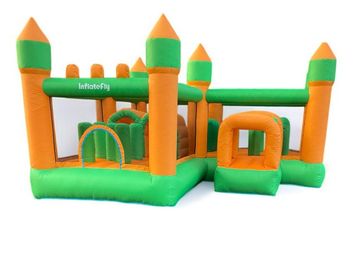 This vibrant orange and green obstacle course bounce house is packed with fun and movement for kids and adults alike! Featuring multiple obstacle pop-ups, crawl-through challenges, and a spacious bouncing area.